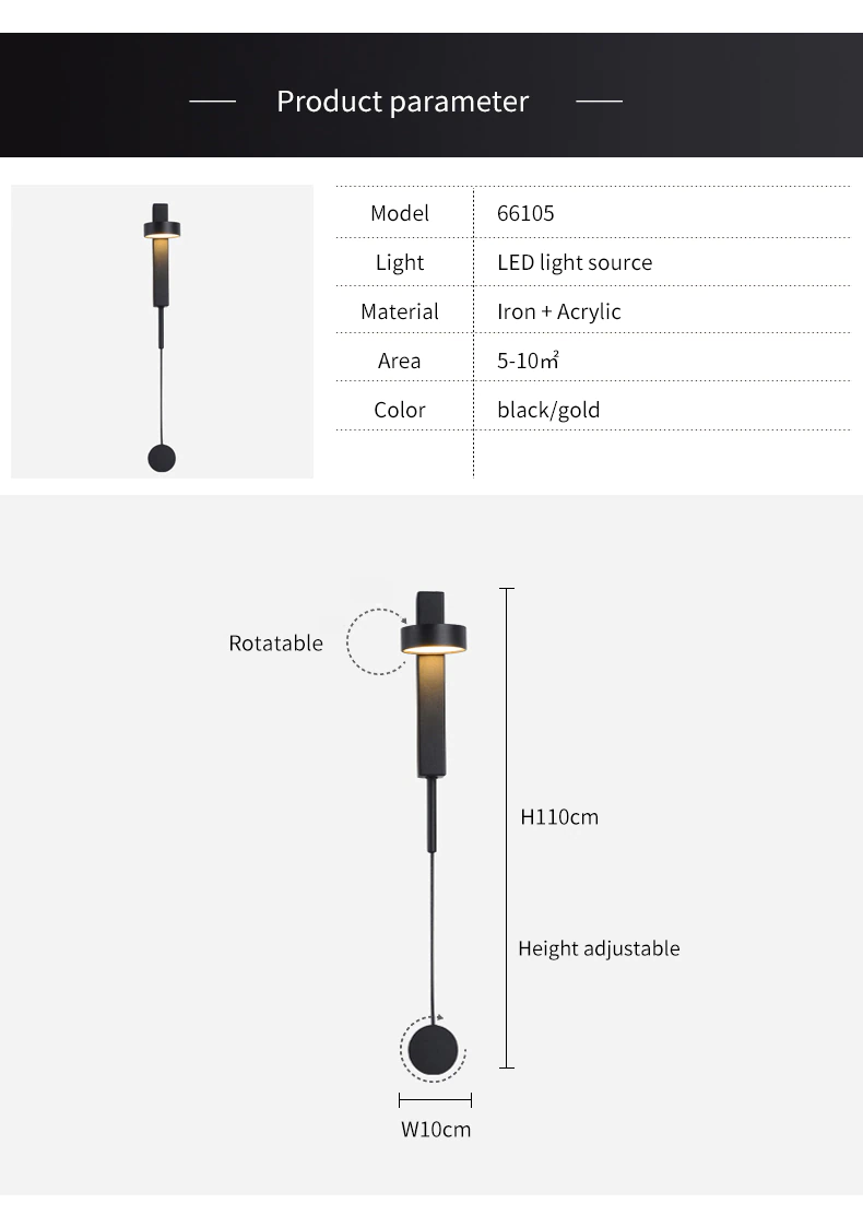 Modern Black/Gold Rotating Wall Lamp Nordic New Corridor Aisle Decoration Bedside Dimming Wall Reading Lamp WD 518