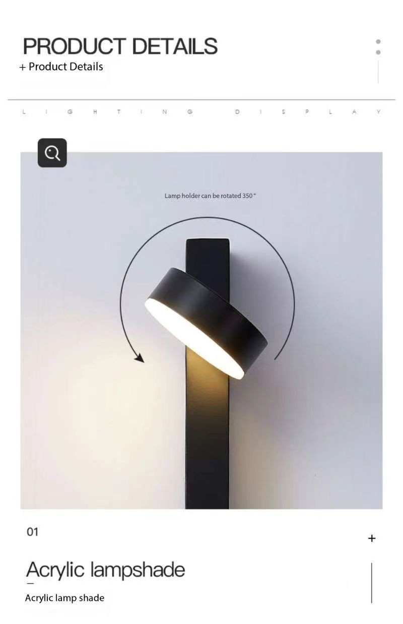 Modern Black/Gold Rotating Wall Lamp Nordic New Corridor Aisle Decoration Bedside Dimming Wall Reading Lamp WD 518