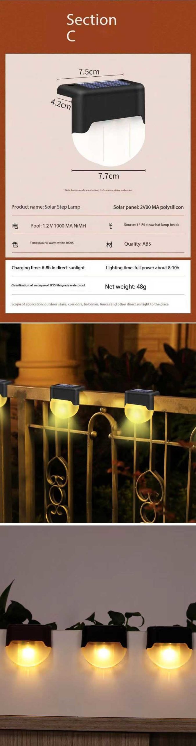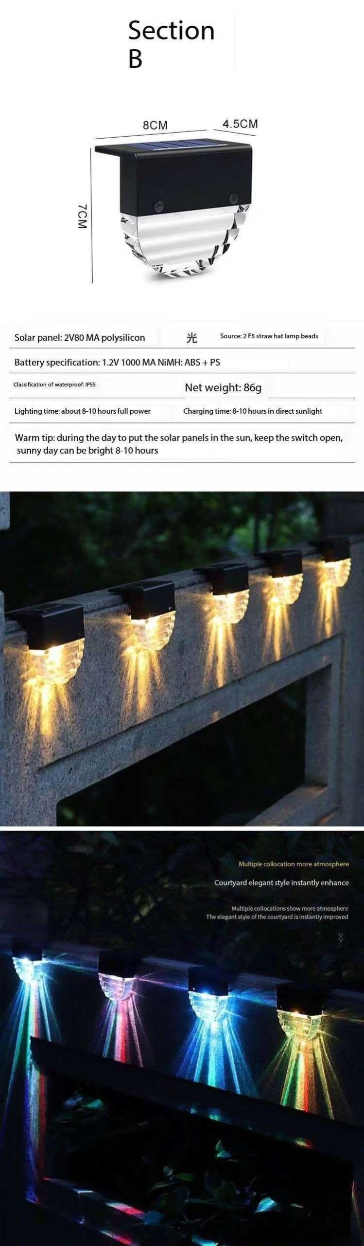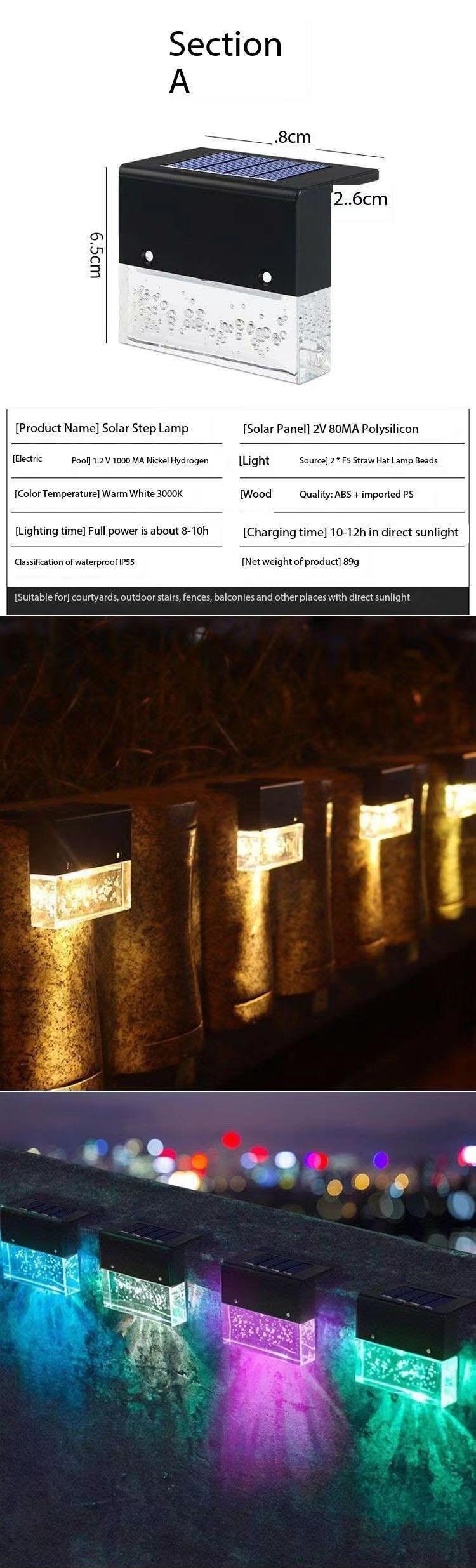 Solar LED Outdoor Patio Light, Stair Wall Light, Stair Step light, Drive-Way Light WL017
