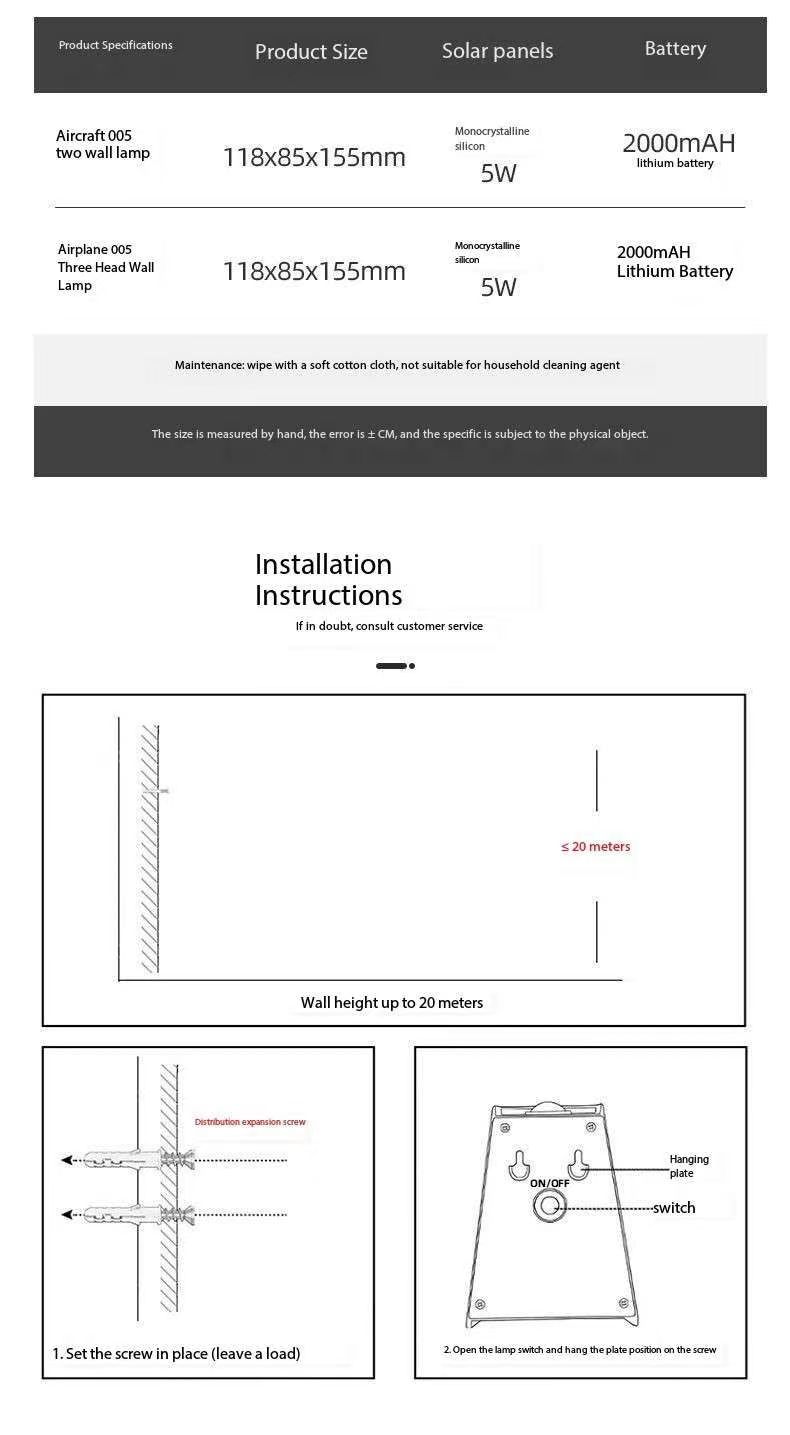 | Model | Solar Wall Lamp ( Three Light Beams ), Solar Wall Lamp ( Two Light Beams ) |