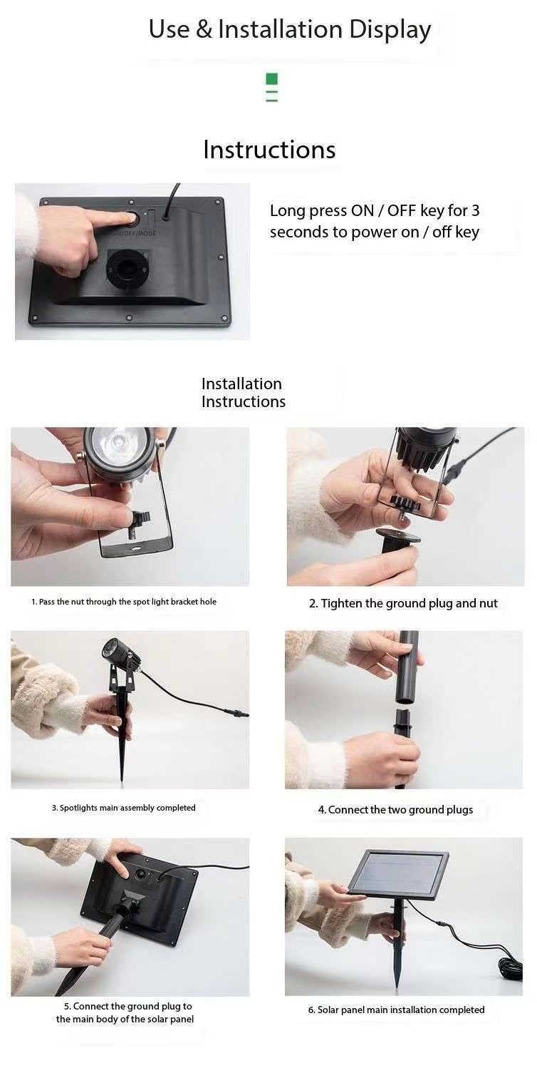 | Model | Type A Solar Spotlight – 4 Lamp Bead, Type A Solar Spotlight – 7 Lamp Bead, Type B 4 Spot Light, Type B Two Spot Light |